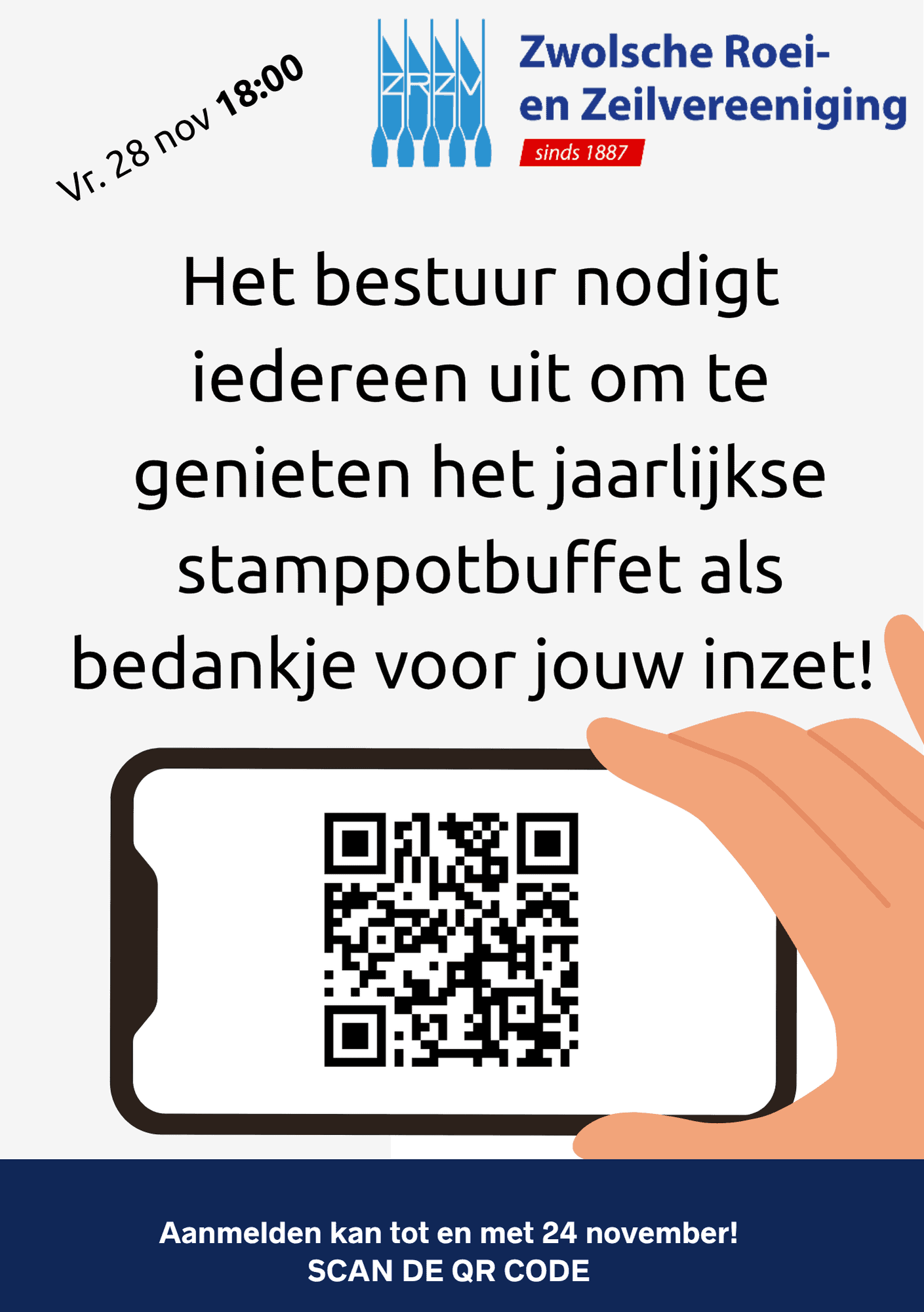 Voor de ALV starten we traditiegetrouw met het stamppotbuffet. Want wat is er nou beter dan samen eten voordat we met elkaar in gesprek gaan over het roeien, reilen en zeilen van de vereniging?